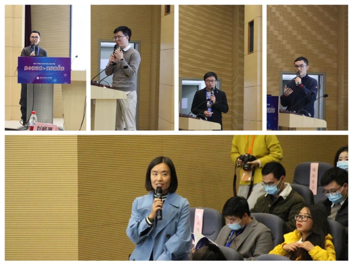 随后,论坛进入了茶歇和墙报展示交流环节。各位评委与观众共同来到先进材料楼二楼进行墙报学术交流。期间评委及现场观众打分,共评选出最佳墙报奖10名。茶歇环节结束后,复旦大学汪群松、张鑫饶、张艳三位同学就聚合物封堵器、硅基纳米颗粒等领域做了相关汇报,合法赌博 俞麟老师高度肯定了三位同学的科研工作并鼓励大家要继续再接再厉,勇攀科研高峰。